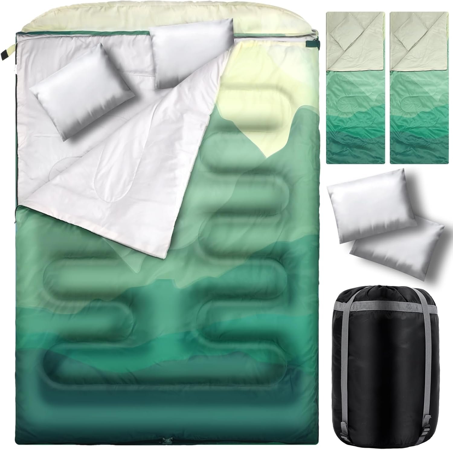 Double Sleeping Bag for Adults with Pillow Queen Size Waterproof Two Person Sleeping Bag for Outdoor Camping Hiking Backpacking All Season Cold Warm Weather