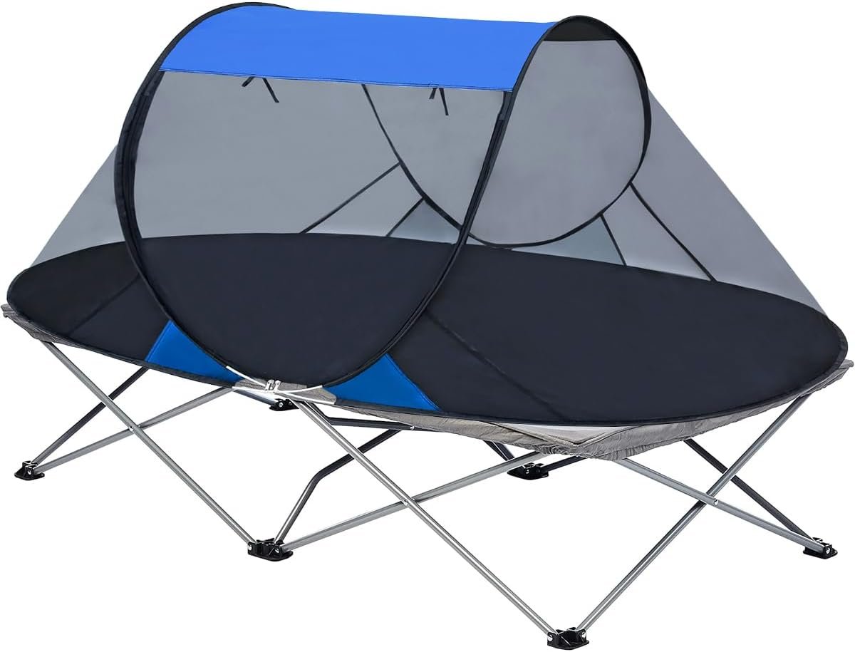 - Durable, Cool & Easy-Access Comfort: This cot tent features a durable 210D Oxford base with a sun-blocking top for shade and bug protection. Quick-entry design with two straps and smooth metal zippers is very convenient